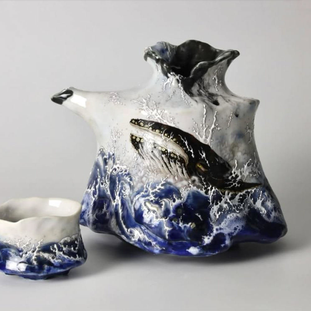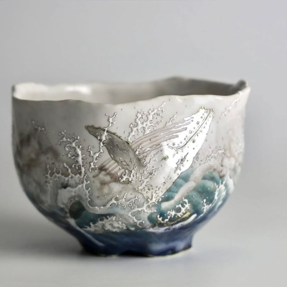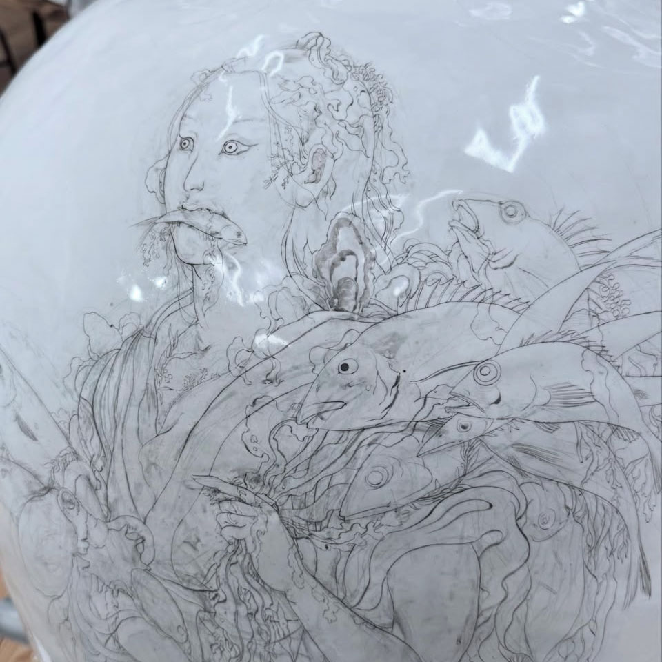 「器の形状は決まっている場合もあれば、決まってない場合もあって。鯨の作品は、もうたくさん描いて慣れているので、ある程度決まっているから、鯨の作品用として造形は作れます。