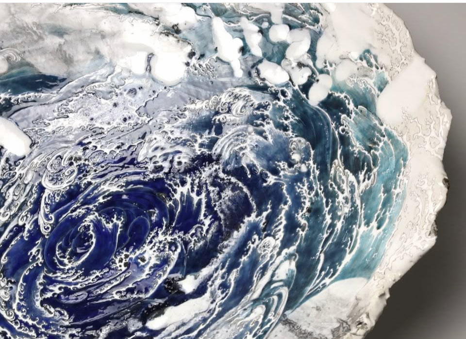今年(2025年)の個展は海をテーマにしたんです。東日本大震災以降、日本人の自然観の、海に対する意識が強く変わったように感じていて。能登の震災もありました。実際に身近で震災が起こると海って恐ろしいものでもあると実感するし、でもそこから離れがたい、離れられない人々もいる。私たちにとって海は根源のものなので離れることはできない。そんなふうに思っていて、今年は、海の恵と同時に海の強烈な力をテーマに『海鳴り』という個展をしたという流れです。